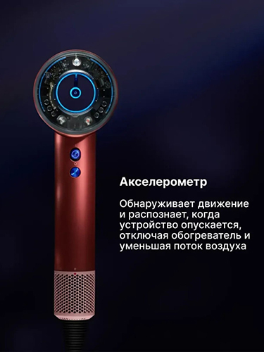 Устройство оснащено акселерометром, распознающим движение, автоматически отключающим нагреватель между укладками, уменьшая поток воздуха и снижая уровень шума.