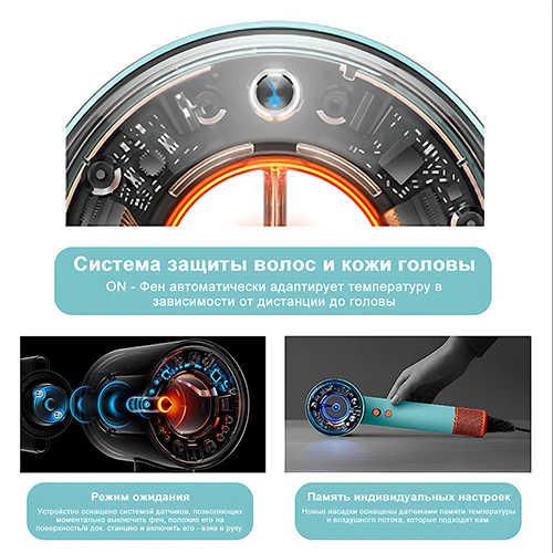 Инновационный датчик отслеживает расстояние до волос и автоматически корректирует температуру, предотвращая перегрев кожи и повреждение волос. Особенно полезен при создании объема у корней или выпрямлении чёлки — фен «заботится» о вашем комфорте даже при близком контакте