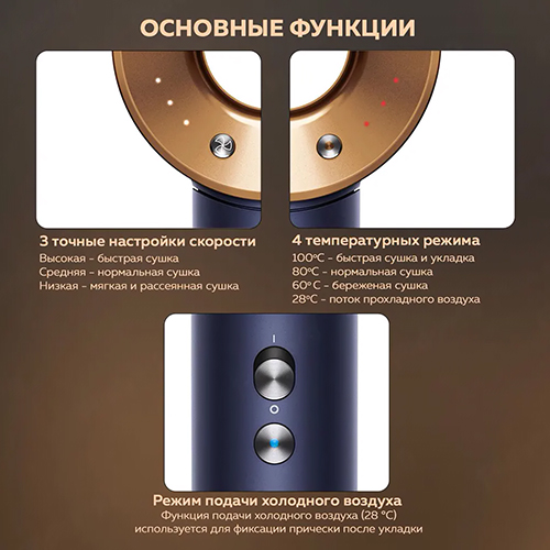 Температурный сенсор измеряет температуру исходящего воздушного потока более 40 раз в секунду, что позволяет предотвратить повреждение волос из-за перегрева