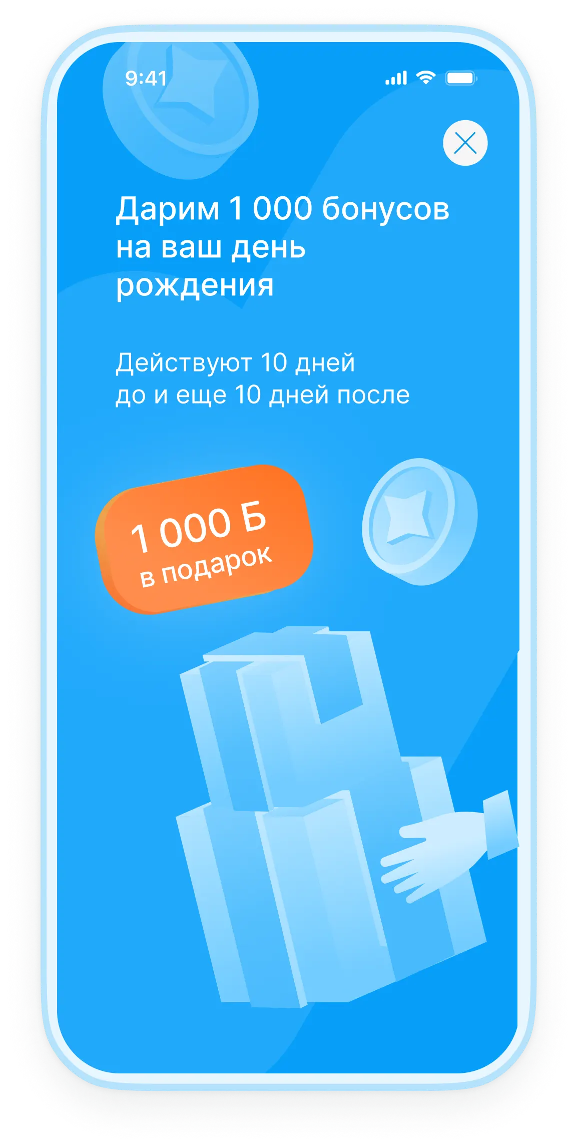 Участнику за 10 дней до дня рождения, указанного в Личном кабинете, начисляется 1000 бонусов. Бонусы становятся активны в момент начисления и действуют в течение 20 дней. По истечению указанного срока неиспользованные бонусы сгорают.