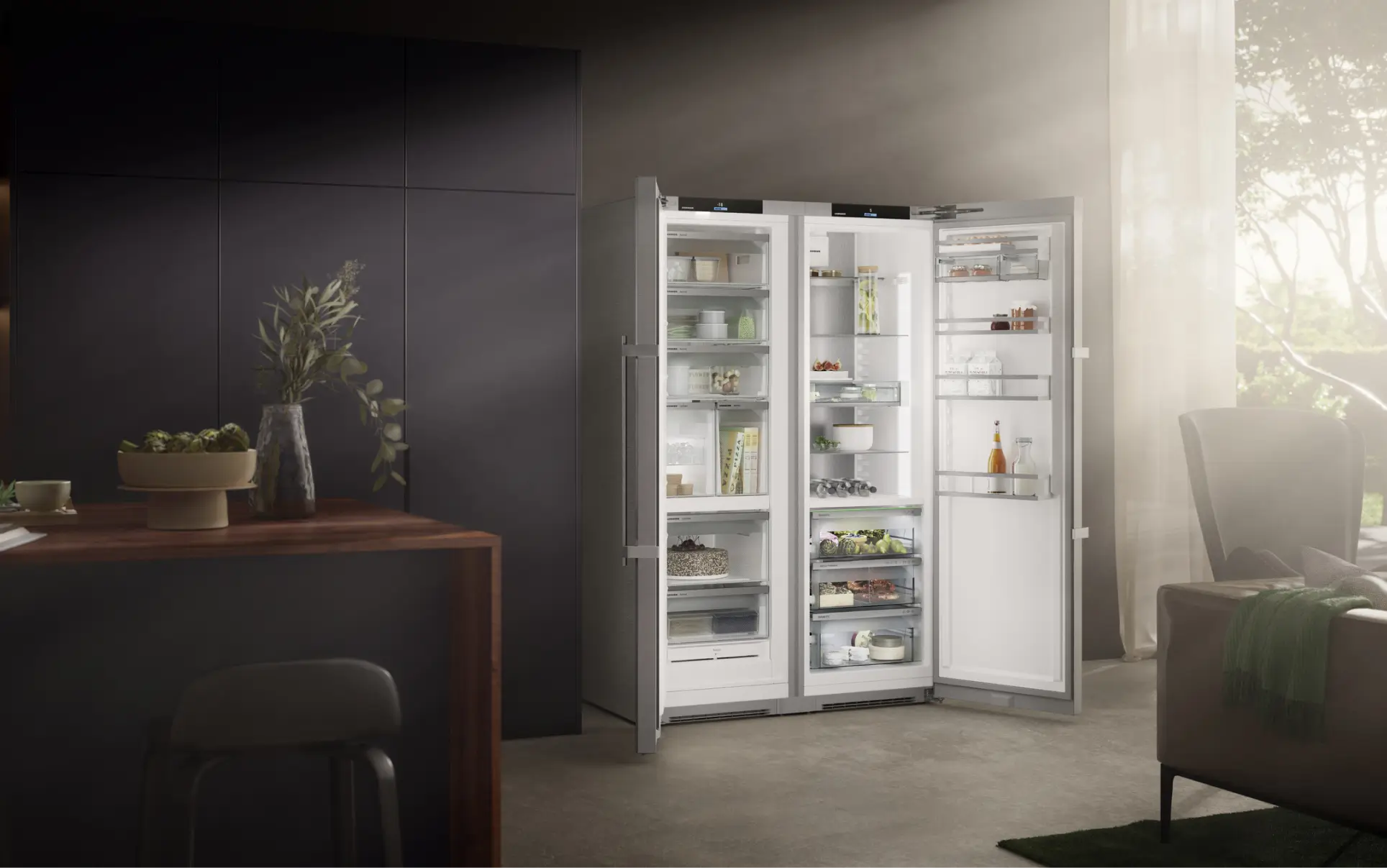 В зоне свежести BioFresh поддерживается стабильная температура, близкая к 0°C, в ней находятся два контейнера: один с высокой влажностью, для хранения овощей и фруктов, а второй с низкой — оптимально подойдет для мяса, рыбы и сыров. В таких условиях продукты дольше хранятся и остаются свежими, а также оптимально сохраняют свои вкусовые качества.