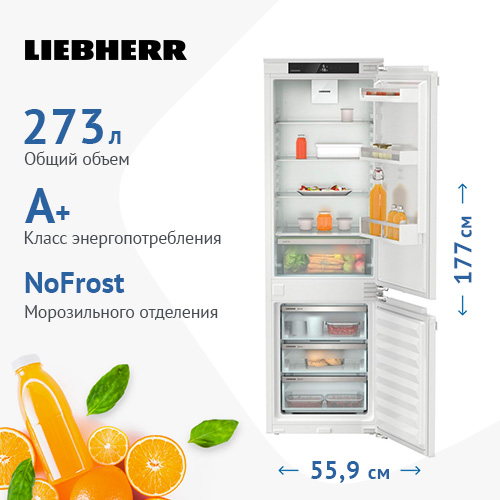 Встраиваемый холодильник с холодильной и морозильной камерами, зоной свежести EasyFresh и системой NoFrost