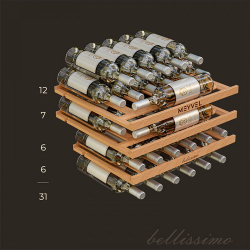 Модель MV31PRO-KBB1 рассчитана на 31 бутылку формата «Бордо» (но есть и полка для нестандартных бутылок). Для их размещения предусмотрены три полки из натурального бука. Дерево выбрано не случайно: оно гасит вибрации, не накапливает посторонние запахи и создаёт благоприятную среду для вина. А благодаря компактности, устройство отлично подойдёт и для небольшой коллекции в уютном ресторане, и для домашнего бара.