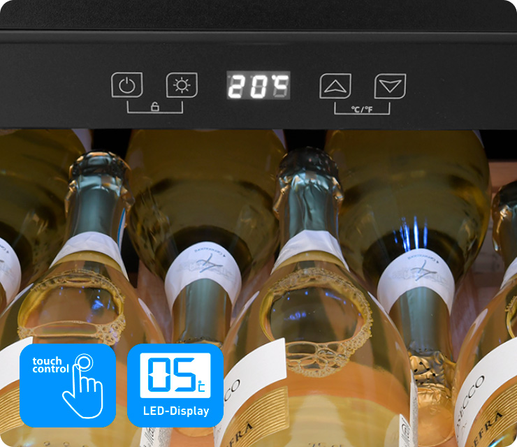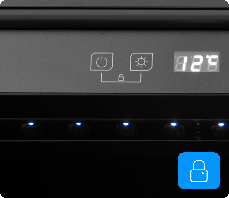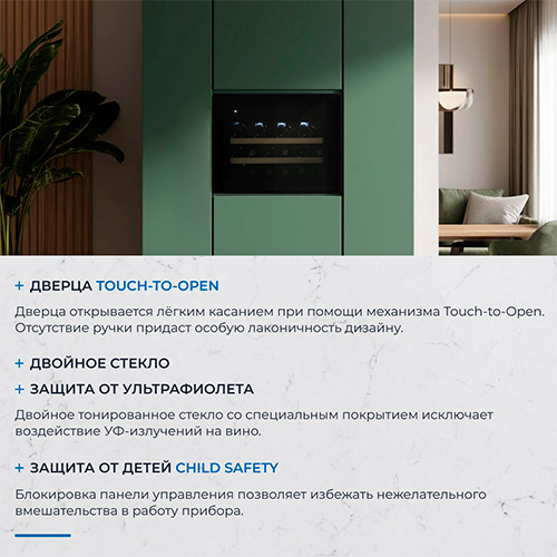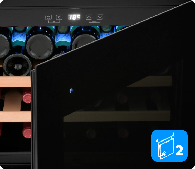 Тонированное стекло защищает вино от воздействия УФ-излучения, сохраняет его качество, придает шкафу стильный элегантный вид