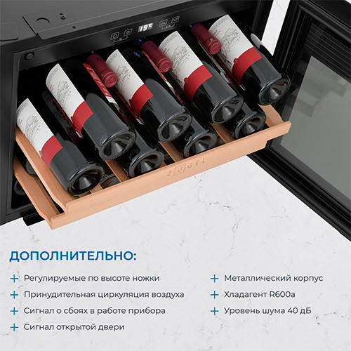 Компрессорный винный шкаф ZUGEL с передовой технологией поддержания необходимой температуры создает идеальные условия для хранения вина. Эта современная встраиваемая модель гармонично впишется в интерьер любого помещения.