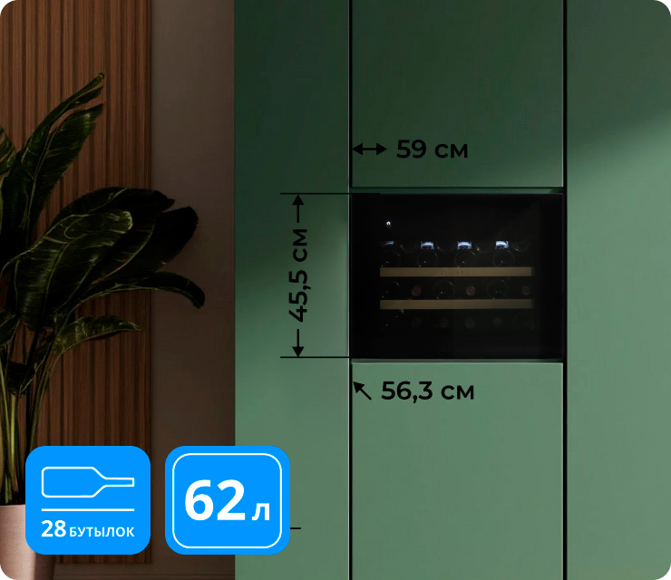 Вместимость 28 бутылок (по 750 мл)