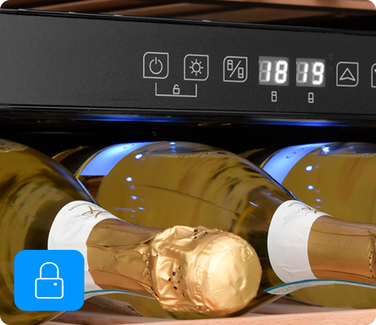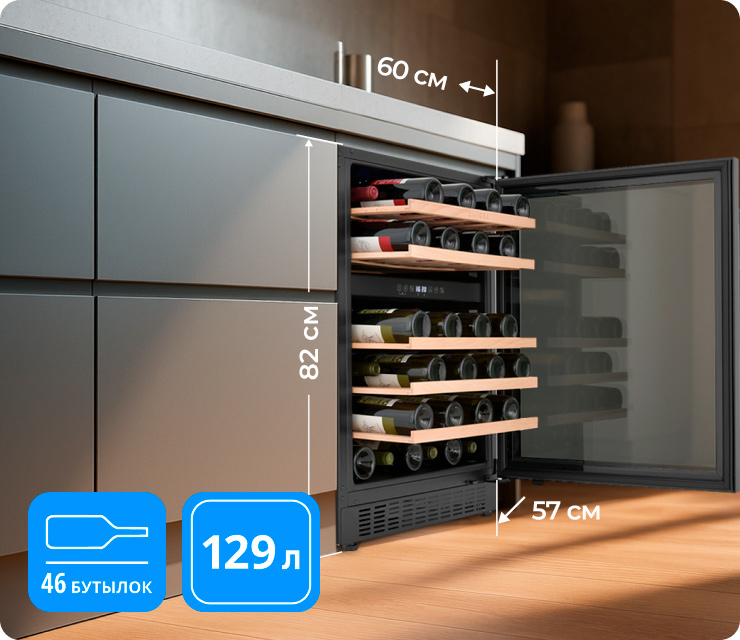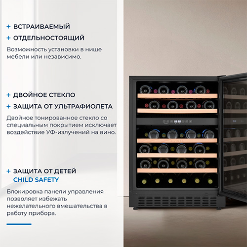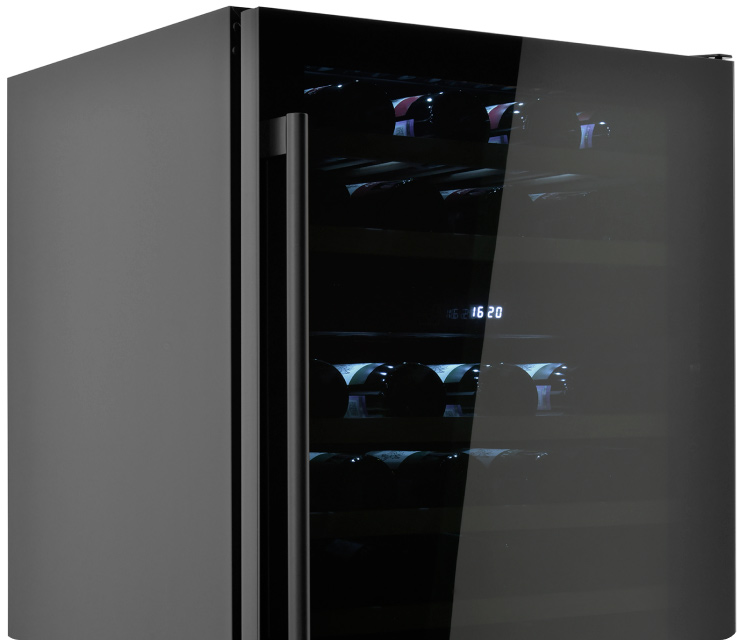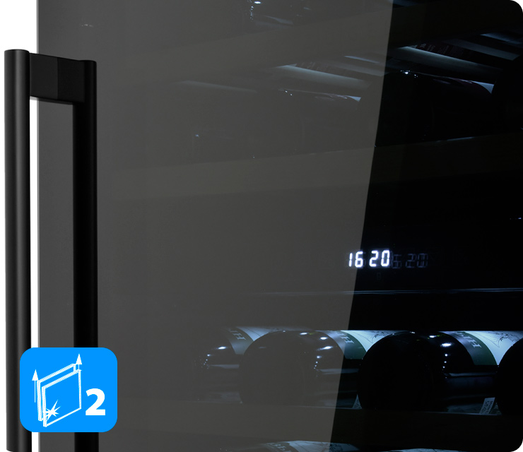Тонированное стекло защищает вино от воздействия УФ-излучения, сохраняет его качество, придает шкафу стильный элегантный вид