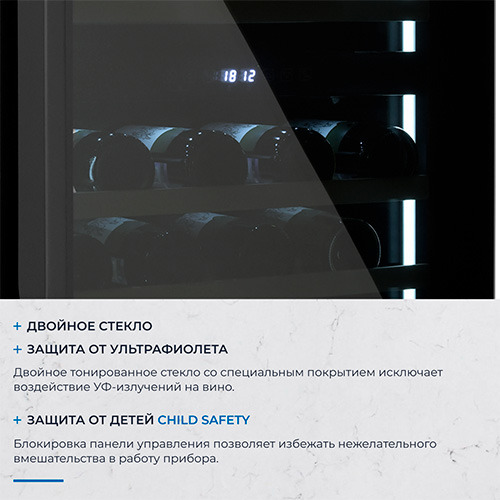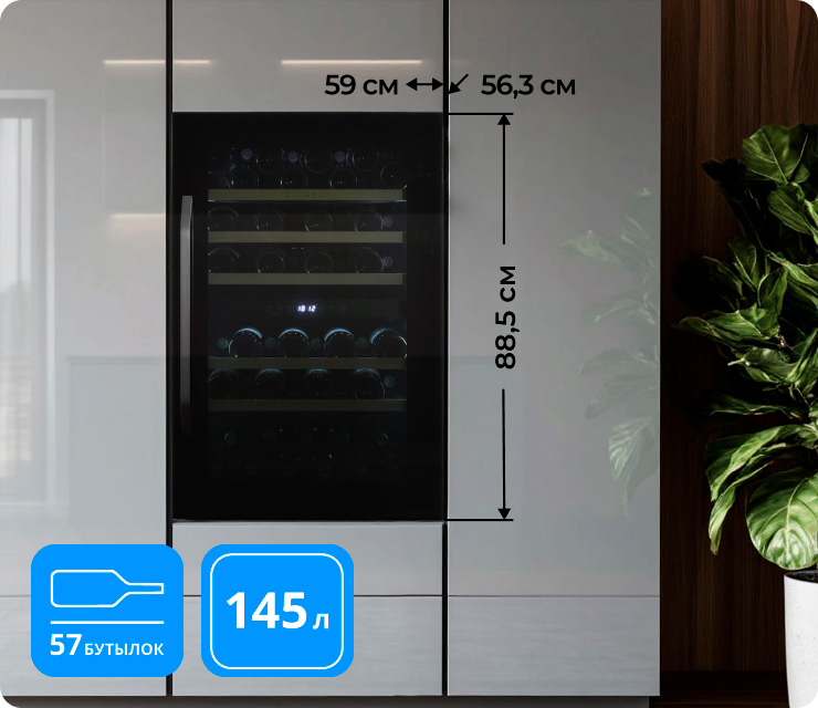 Вместимость 57 бутылок (по 750 мл)