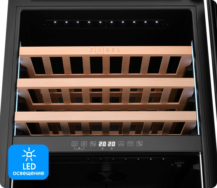 Компрессорный винный шкаф ZUGEL с передовой технологией поддержания необходимой температуры создает идеальные условия для хранения вина. Эта современная встраиваемая модель гармонично впишется в интерьер любого помещения.