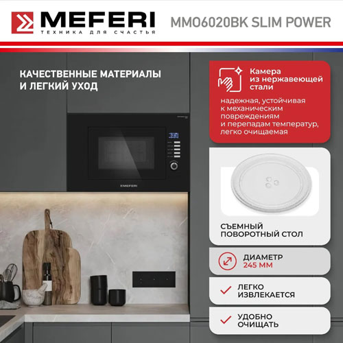 Встраиваемая микроволновая печь СВЧ Meferi MMO6020BK SLIM POWER В наличии. |