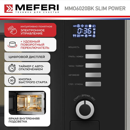 Встраиваемая микроволновая печь СВЧ Meferi MMO6020BK SLIM POWER, отзывы (0) | Добавить отзыв |