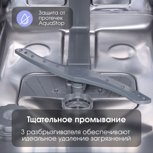 3 независимых разбрызгивателя эффективнее всего производят очищение посуды с минимальными тратами воды и электроэнергии.