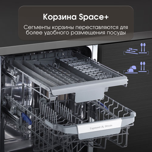 Отдельная корзина для столовых приборов дает возможность легче, быстрее и оптимальное разложить предметы для качественной обработки и удобной загрузке.