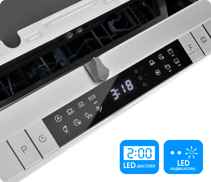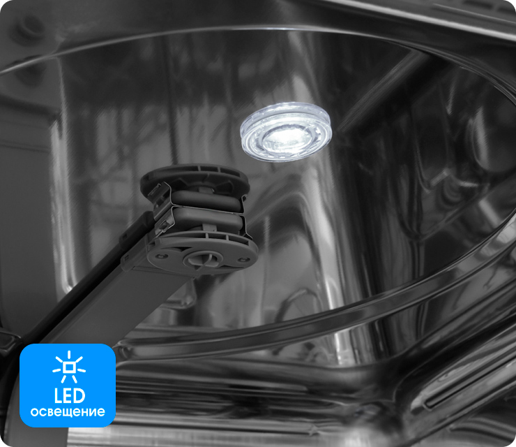 Загрузка и разгрузка посудомоечной машины становятся намного проще благодаря встроенной LED-подсветке.