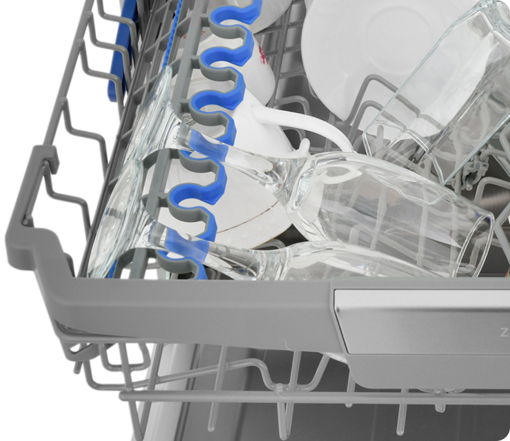 Держатели для бокалов: мягкие силиконовые держатели надежно фиксируют хрупкие бокалы в корзине, не допуская их соприкосновения и повреждения