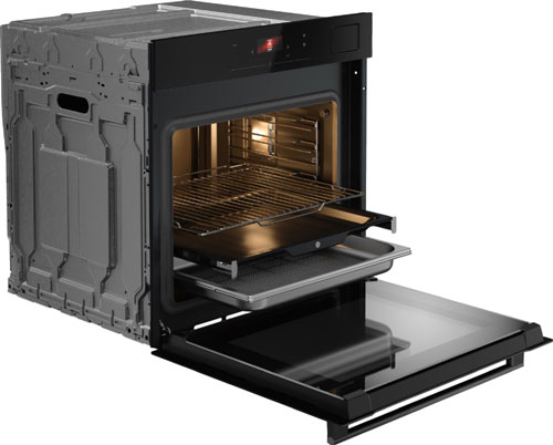 Доставать тяжелые и горячие блюда из духовки теперь легко и безопасно. Полностью выдвижные телескопические направляющие плавно выезжают из камеры, позволяя удобно и безопасно ставить и извлекать даже самые тяжелые и горячие блюда. Больше не нужно тянуться вглубь горячей духовки! Такие направляющие также снижают риск пролить или уронить блюдо.