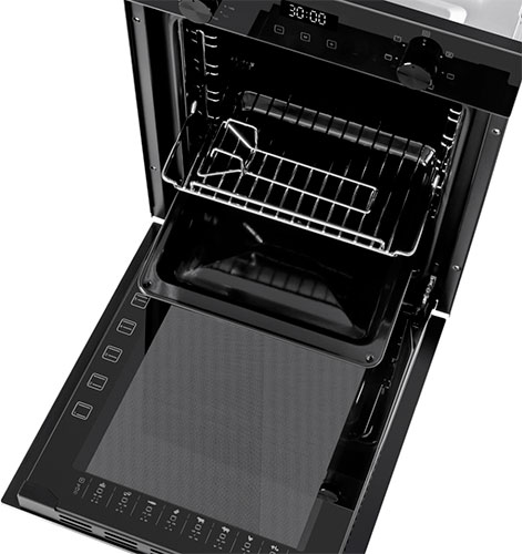 При объёме 51 л. вы можете готовить одновременно несколько блюд, разместив решетку или противень на одном из 5 уровней боковых направляющих.