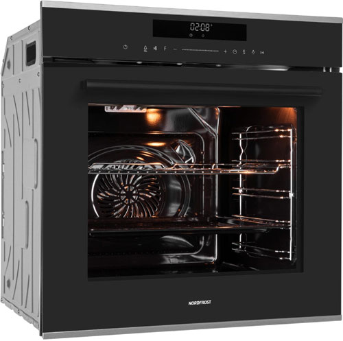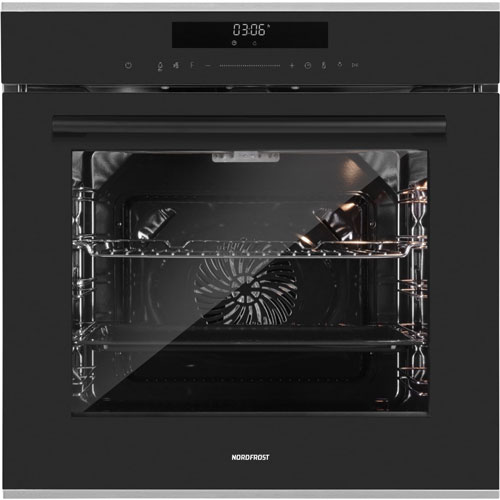 Встраиваемый электрический духовой шкаф NORDFROST HM 65130 B с общим объемом камеры 74 литра, сенсорным управлением, режимом конвекции и 13 программами нагрева — прекрасное решение для приготовления любимых блюд.
