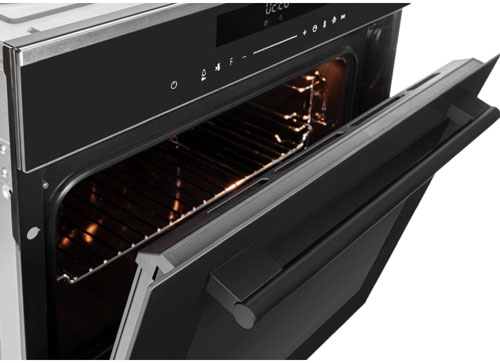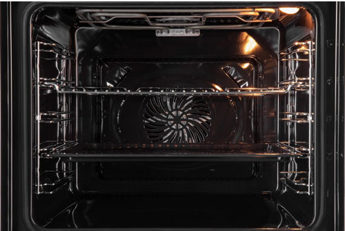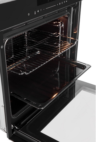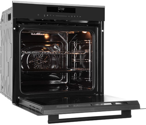 Духовой шкаф имеет внутренний объем 74 литров и высокую мощность нагрева до 3440 Вт. Конвекционный вентилятор обеспечивает постоянную циркуляцию горячего воздуха по всей камере, поэтому блюда из мяса и овощи получаются сочными, нежными, с хрустящей корочкой. Диапазон рабочих температур модели составляет 25-280°С.