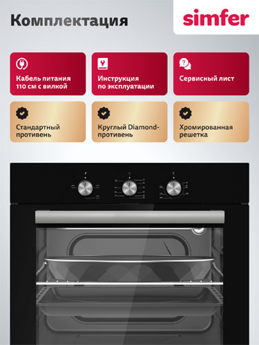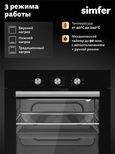 Электрический духовой шкаф "Simfer" - это надежное и функциональное устройство, которое станет отличным дополнением к любой кухне. Его просторная камера позволяет готовить большие порции, а современные технологии облегчают процесс приготовления и уход за духовкой. Приобретайте этот прекрасный прибор уже сегодня и наслаждайтесь вкусными блюдами без лишних хлопот!