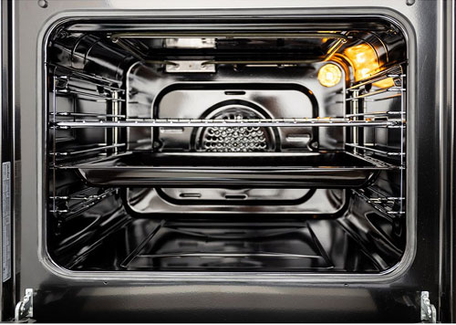Элементы из нержавеющей стали и черное стекло придают духовке современный и элегантный вид.