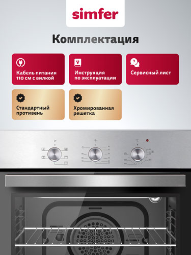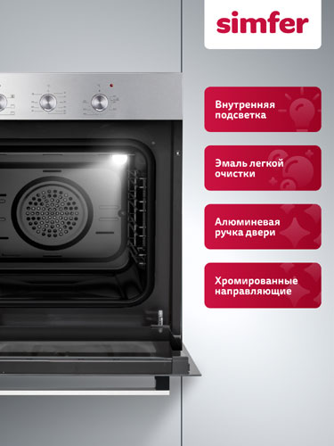 Духовой шкаф электрический встраиваемый Simfer B6EM16023, 5 режимов, сочетает в себе стиль и функциональность.