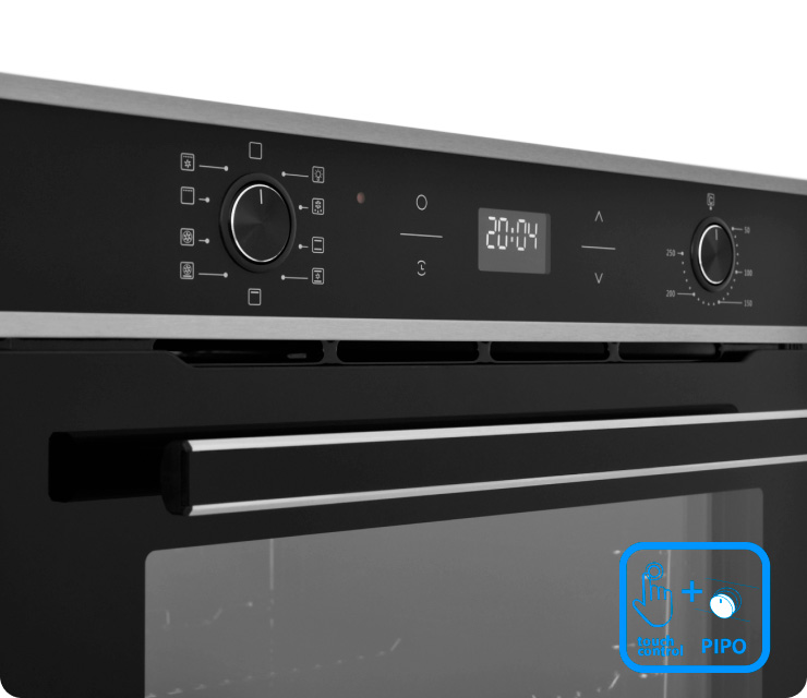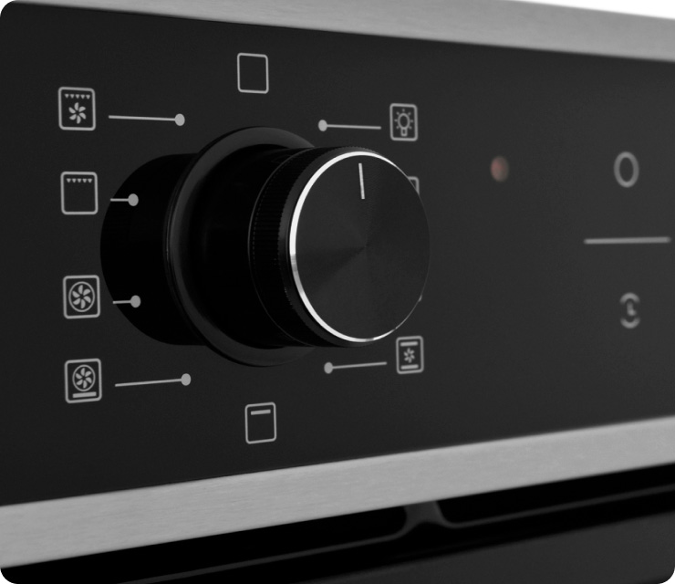 Искала духовку с комбинированным управлением – иногда переключатели удобнее, чем сенсорные панели. И очень важно было наличие скрытых ручек – у меня ребенок очень любит все потрогать и покрутить. Тут после настроек регуляторы просто утапливаются в панель и все.