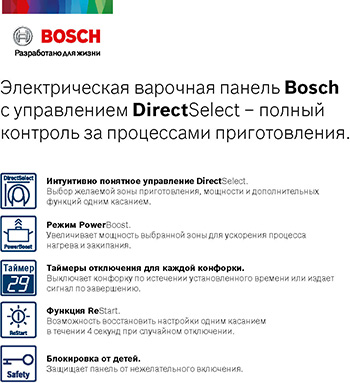 Сенсорное управление DirectSelect: позволяет сохранять полный контроль за процессами приготовления на варочной поверхности.