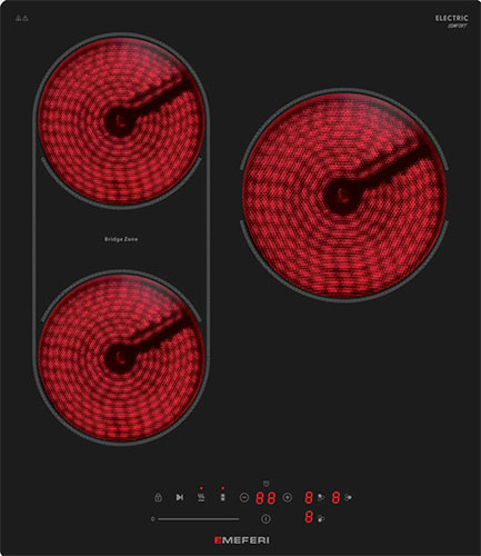 MEFERI MEH453BK COMFORT – это стильная и функциональная варочная панель, которая откроет вам новые кулинарные возможности. С тремя конфорками и функцией Bridge, объединяющей две зоны нагрева, вы можете готовить несколько разных блюд одновременно.