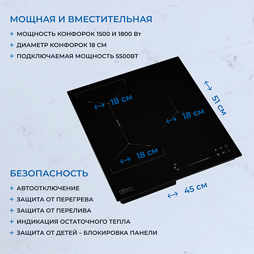 5,00 | | Преимущества: | Вот это я понимаю, когда техника действительно учитывает нужды человека. Маленькая ширина в 45 см идеально вписалась в мою скромную кухоньку, а мощности хватает, чтобы на всех конфорках что-то варганить. А функции безопасности типа защиты от перелива и блокировки от детей – это такое спокойствие! | | Недостатки: | Даже придираться не к чему – она идеальна. | | Комментарий: | Чудо техники, однозначно! За стильный черный дизайн отдельный лайк – красота и практичность в одном флаконе. Как по мне, так это лучшая покупка за последнее время! |