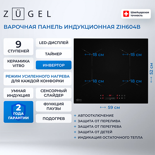 Электрическая варочная панель Zugel ZIH604B В наличии |
