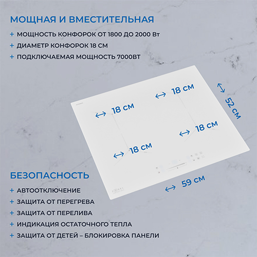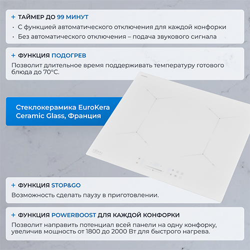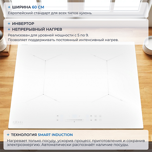 5,00 | | Преимущества: | Просто влюблена в сенсорное управление этой панели – оно делает приготовление еды не только удобным, но и интуитивно понятным. Четыре мощные конфорки позволяют готовить несколько блюд одновременно, экономя время и энергию. | | Недостатки: | Сложно выделить, все на высшем уровне. | | Комментарий: | Белый цвет и стильный дизайн прекрасно сочетаются с интерьером, а функция Smart Induction экономит электроэнергию, автоматически распознавая наличие посуды. |