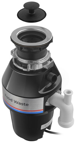 Габариты измельчителя (высота 365 мм, диаметр 197 мм, вес 4,2 кг) позволяют разместить его в сливе мойки даже в небольшой кухонной тумбе.