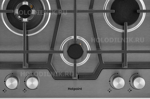 Газовая варочная панель HotPoint HGMT 643 W IX цвета нержавеющей стали - это премиальный дизайн в сочетании с надежными и безопасными технологиями. Фронтальное расположение панели управления и встроенный в ручки электроподжиг обеспечат максимальные удобство и комфорт эксплуатации. Прочные чугунные решетки гарантируют максимальную устойчивость посуды - она не опрокинется и не будет скользить по поверхности.