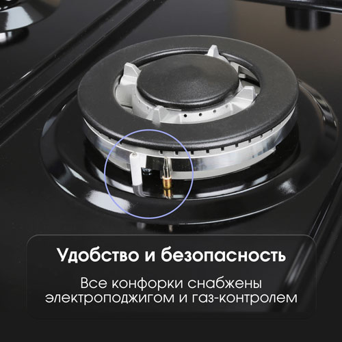 Каждая ручка оснащена электроподжигом, что избавляет вас от необходимости использовать спички или зажигалки, обеспечивая мгновенное зажигание пламени одним движением.