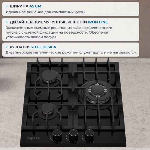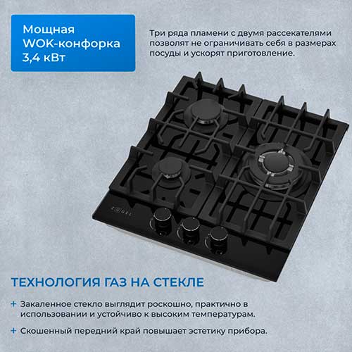 5,00 | | Преимущества: | Мне, как любителю азиатской кухни, очень зашла WOK-конфорка с тройным контуром огня, сковородку греет действительно быстро. Автоподжиг работает безотказно. Ну и система газ-контроля добавляет спокойствия – безопасность превыше всего. | | Недостатки: | Не нашёл. | | Комментарий: | Чугунные решётки не только добавляют эстетики, но и обеспечивают устойчивость посуды. Закалённое стекло и дизайнерские металлические рукоятки и выглядят классно, и чистятся легко. В целом, чёрный цвет немного непрактичен в уходе, но красота требует жертв, не так ли?) |
