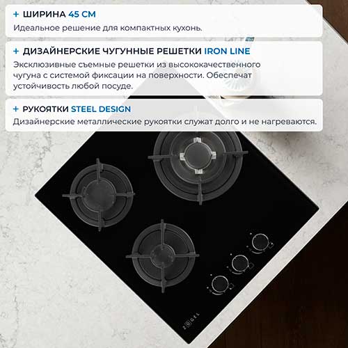 5,00 | | Преимущества: | Стильный минимализм в дизайне, гармонично смотрится с современной мебелью, три конфорки расположены удобно для одновременного использования, предусмотрена мощная Вок-конфорка, чугунные решетки надежны и устойчивы даже для тяжелой посуды, ручки приятны на ощупь. | | Недостатки: | Требует регулярной чистки | | Комментарий: | Модель классная! Сочетает эстетику и функциональность. По дизайну зайдет в любой интерьер. По функциям есть все, что нужно. Работает безупречно. |