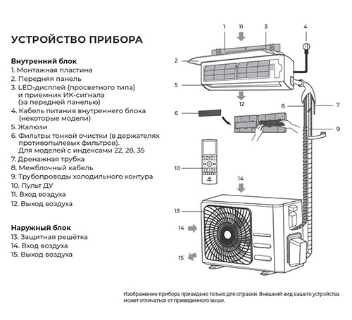 Режимы работы: охлаждение/обогрев/осушение/вентиляция