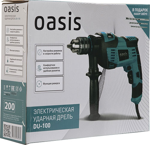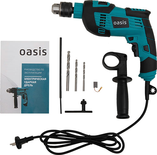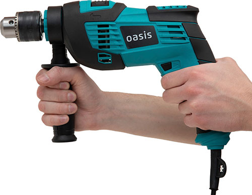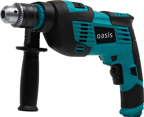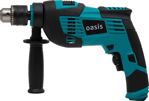 Электрическая ударная дрель Oasis для выполнения сверлильных работ в металле, дереве, пластмассе в режиме сверления; в бетоне, кирпиче и т.п. в режиме сверления с осевыми ударами.