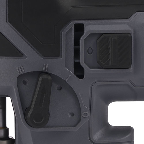 Прорезиненная рукоятка снижает вибрацию, широкая клавиша удобна для работы в перчатках, а защита от случайного пуска делает инструмент безопасным в использовании.