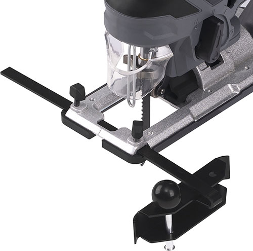 Грибовидная рукоятка, параллельный упор с циркулем и регулировка амплитуды хода обеспечивают удобство и точность при выполнении фигурных и криволинейных резов.