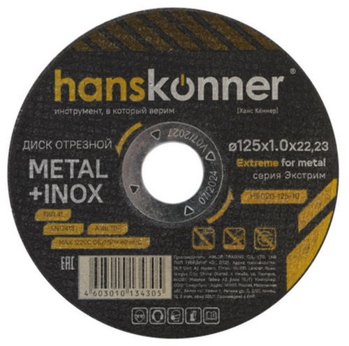 Отрезной диск по металлу Hanskonner H9020-125-10 В наличии. |
