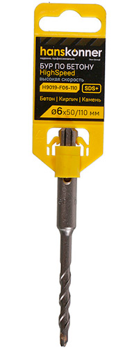 Бур SDS+ Hanskonner HIGH SPEED, 6х110 мм, плоский резец, U-спираль (H9019-F06-110) В наличии. |