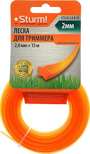 Леска для триммера Sturm! GT3535-2.0-8-15, d=2.0 мм, l=15 м, ЗВЕЗДА (оранж. картон) В наличии |