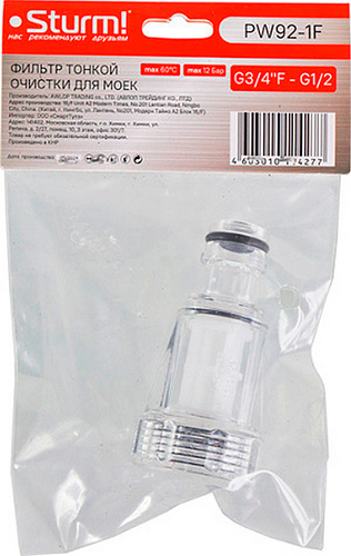 Фильтр тонкой очистки для мойки высокого давления Sturm! PW92-1F, Малый, отзывы (0) | Добавить отзыв |