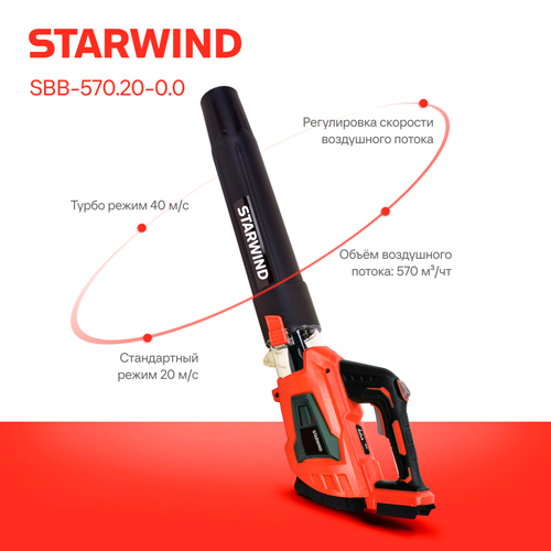 Воздуходувка Starwind SBB-570.20-0.0, пит. от аккум., красный/черный В наличии. |