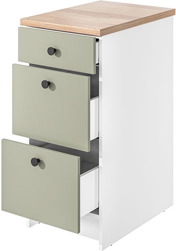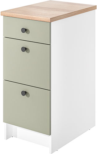 Компактный напольный шкаф со столешницей и тремя выдвижными ящиками, является отличным дополнением к основным модулям, увеличивающим место для хранения кухонной утвари и продуктов в кухонном гарнитуре. Создавайте кухонный гарнитур, полностью отвечающий вашим потребностям. Данный модуль так же можно использовать самостоятельно.