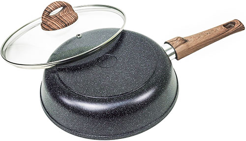 Сковорода изготовлена из литого алюминия. Вообще существует три способа производства посуды: литой, кованый и штампованный, лучший из которых на сегодняшний день - литой; только таким методом производят толщину премиум-класса! Это говорит о том, что сковорода прослужит долгое время, гарантируя прочность и качество.