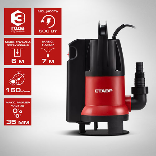 500 ВТ: Мощный электромотор обеспечивает стабильную работу и долгий срок службы насоса.