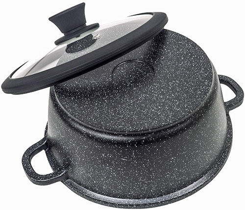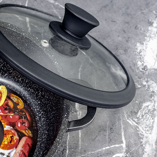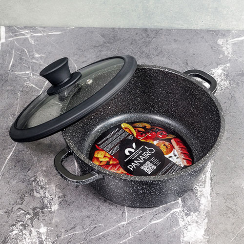 • Мраморный черный цвет будет отлично смотреться на фоне любого интерьера. Благодаря цвету кастрюля даже после многократного использования будет долго выглядеть, как новая.
